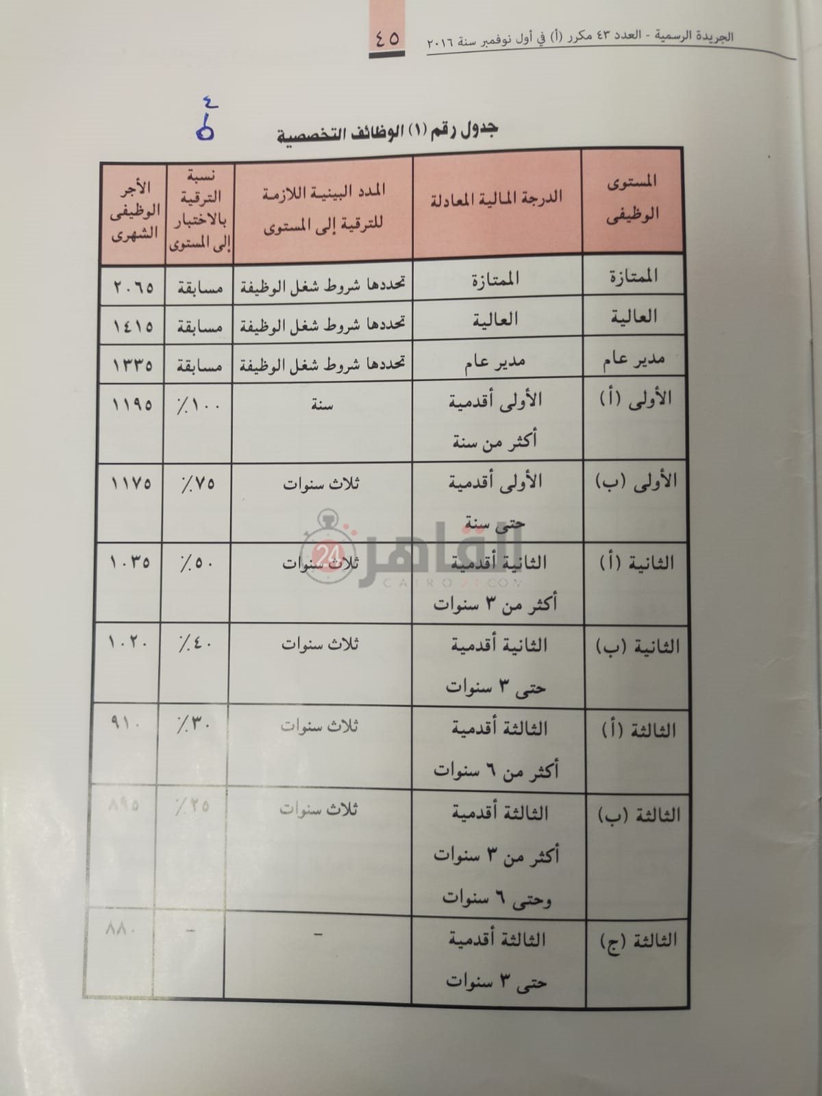 ويحدد قانون الخدمة المدنية رقم 81 لسنة 2016، هذه المدد البينية لمن أتموا في مستوياتهم الوظيفية حتى 30-6- 2021 شريطة ألا تقل عن المدد البينية المحددة لكل مستوى وظيفي بالجدول السابق إلى المستويات التي تعلوها.