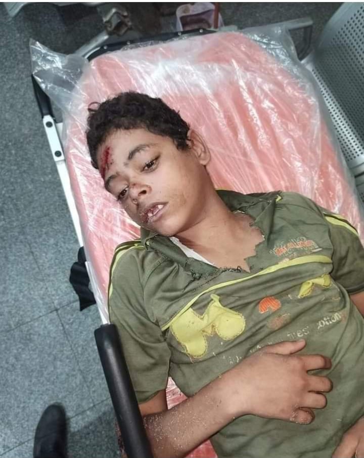 بالانتقال والفحص وسؤال الطفل، أفاد إنه من مركز أخميم، شرقي المحافظة، ولا يدري أية تفاصيل أخرى عن نفسه أو عن ظروف إصابته.
