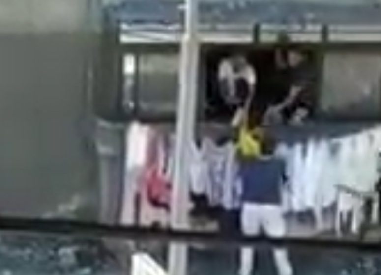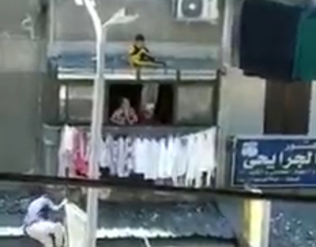 وظهر في الفيديو سيدتان تستغيثان بعد سقوط طفل على «تندة» من الحديد، وعلى الفور بادر سكان المنطقة بالصعود أعلى «التندة» التي توجد بالدور الأول، والتقطوا الطفل وأنقذوه من موت مُحقق.