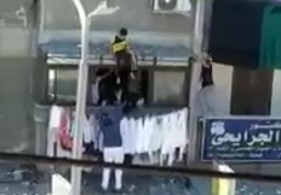 تداول عدد من مستخدمي مواقع التواصل الاجتماعي، فيديو يظهر فيه مجموعة من الشباب ينقذون طفلًا سقط من شُرفة منزل بمنطقة المروة نطاق حي الزهور.