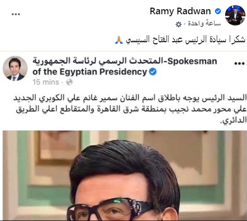 كما علق زوجها الإعلامي رامي رضوان على هذا الخبر، عبر حسابه الشخصي بموقع التواصل الاجتماعي فيس بوك، قائلًا: شكرًا سيادة الرئيس.