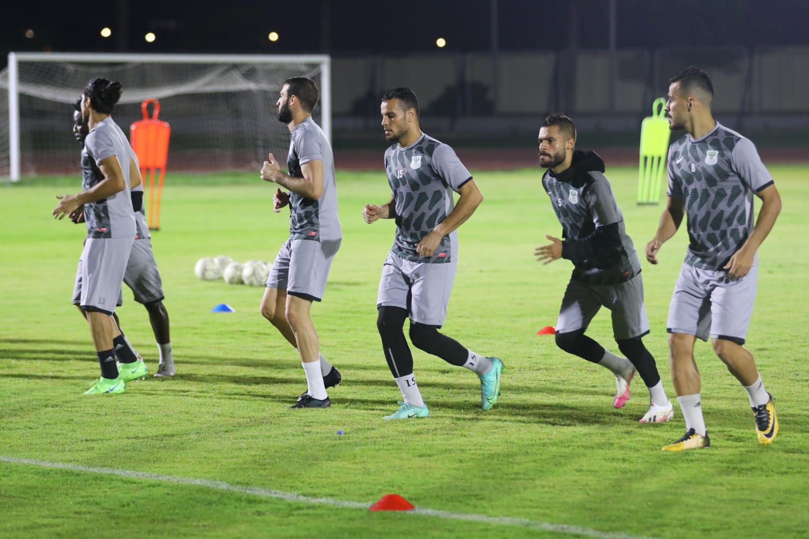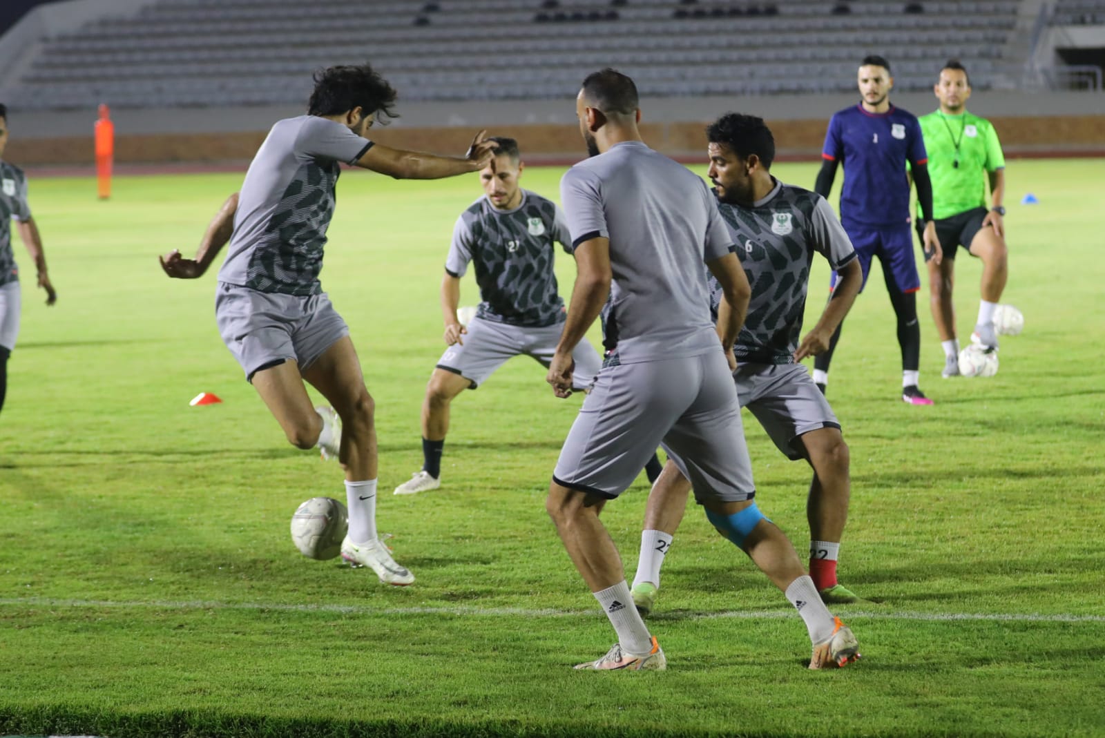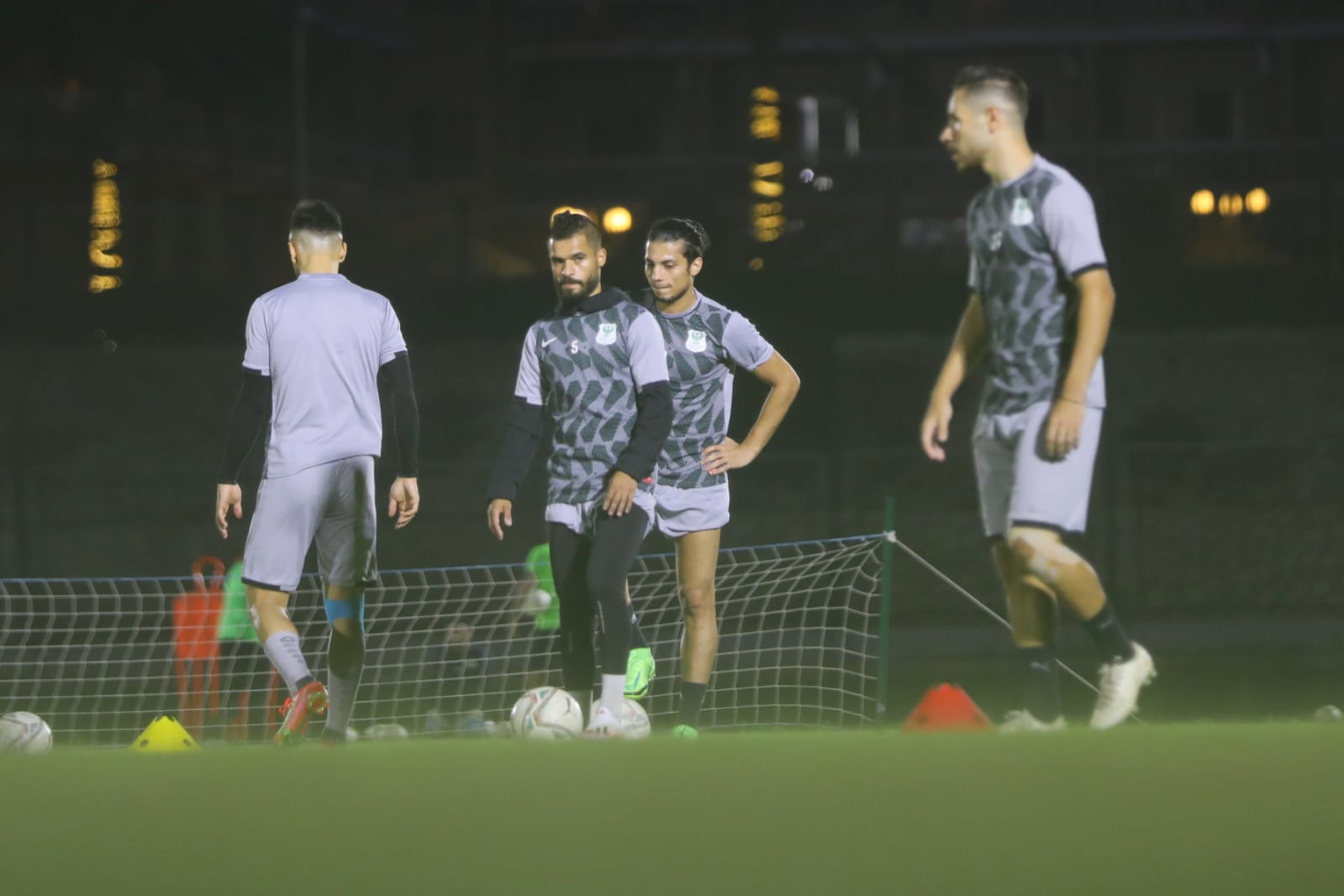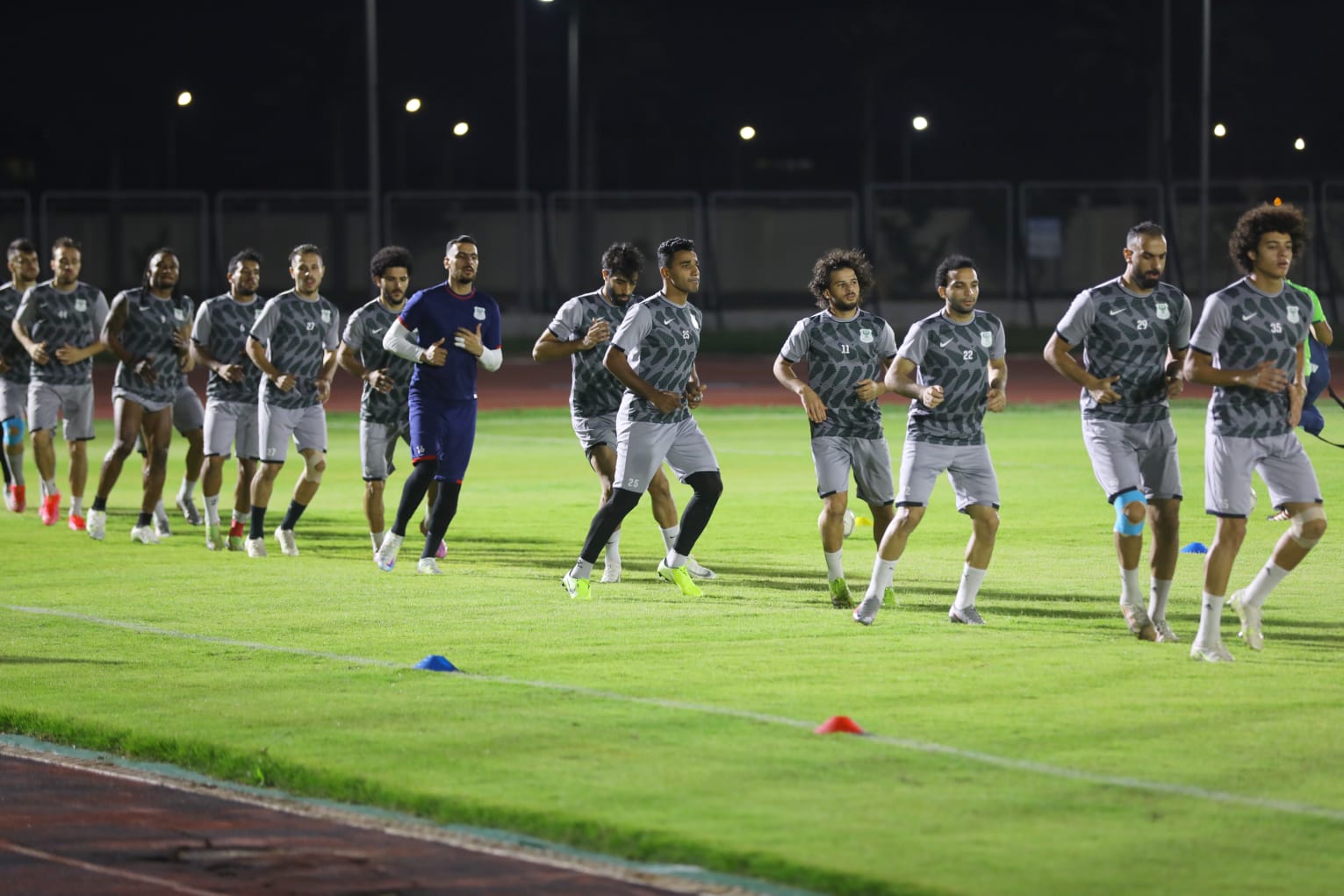 لاعبو النادي المصري خلال التمرين