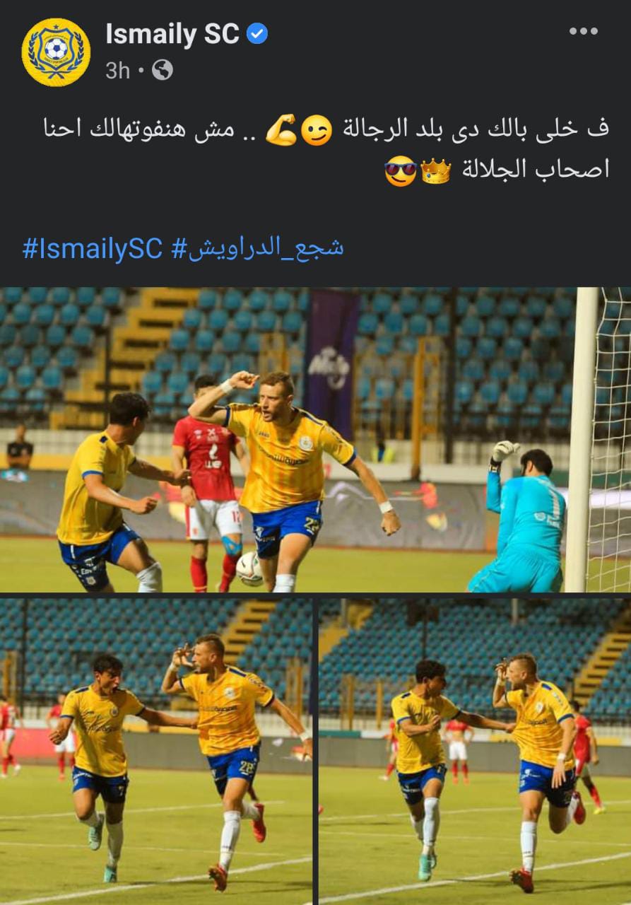 نشرت الصفحة الرسمية للنادي الإسماعيلي رسالة غامضة، عقب تعادل الفريق إيجابيًا مساء أمس أمام نظيره الأهلي بهدف لكل فريق.