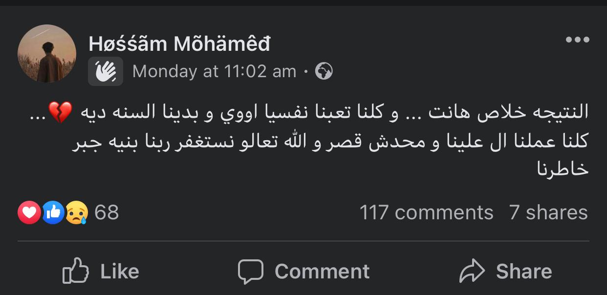 حسام محمد، طالب بالثانوية العامة، عبّر عن خوفه من انتظار نتيجة الامتحانات، في جروب Tablet 20-21 الخاص بطلاب الثانوية العامة، قائلا: النتيجة خلاص هانت.. وكلنا تعبنا نفسيًا وبدنيًا السنة دي.. كلنا عملنا اللي علينا ومحدش قصر.
