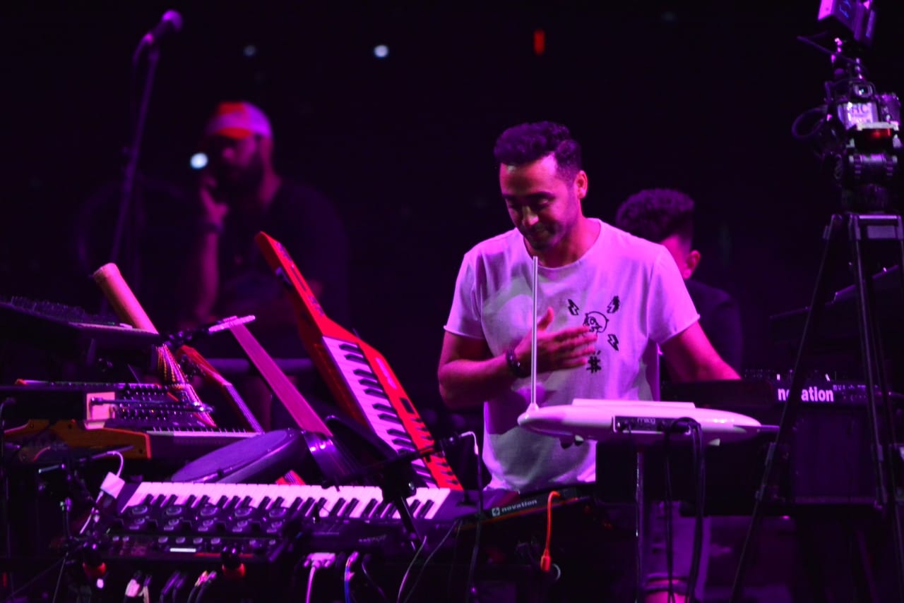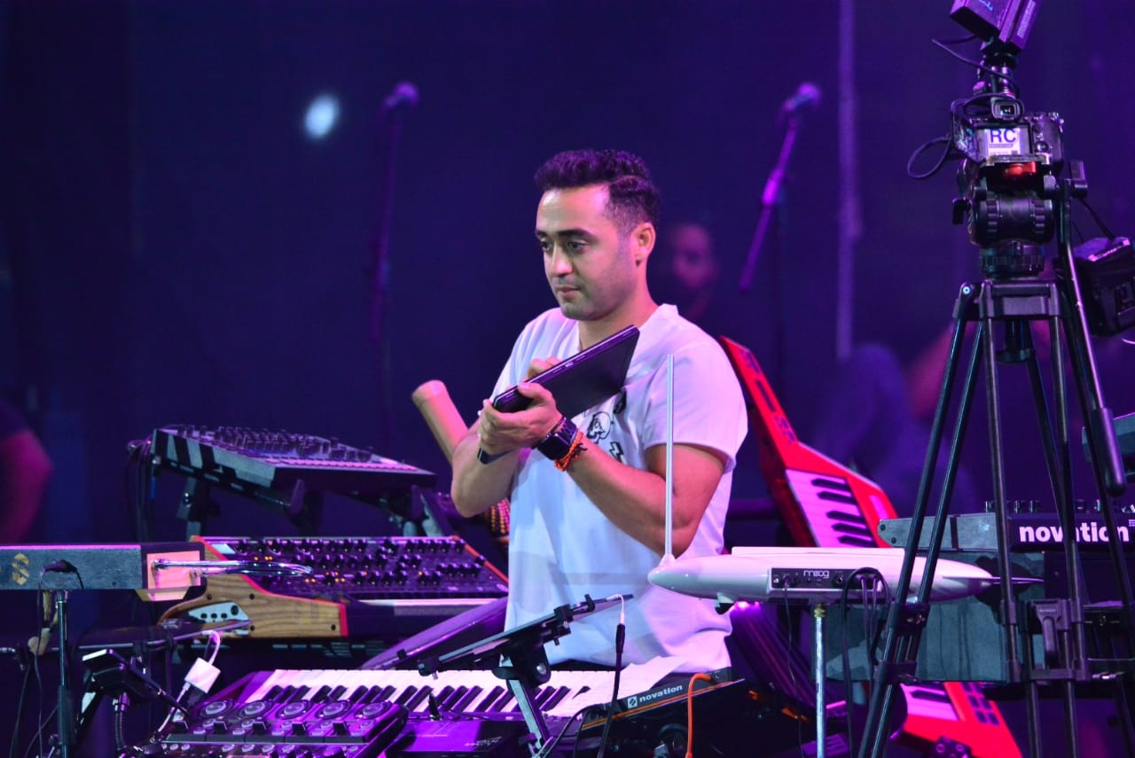 عزف المسبورد وآلات النفخ مع مزيج من الموسيقى الإلكترونية مع مزجها بإبهار بصري واستعراضي غير مألوف، كما فاجأ الجمهور بالعرض الأول لأجدد أعماله «حياتي بلادي»، والتي أهداها لقيادات البلاد من الجيش والشرطة.