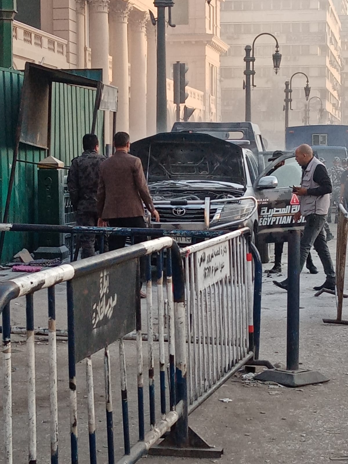 وتلقت شرطة النجدة بلاغا بنشوب حريق في سيارة شرطة أمام دار القضاء العالي من ضمن الحراسة المتوقفة بالمنطقة، وتم إخطار الأجهزة المعنية بالحادث.