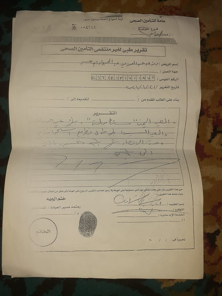واختتم: «معايا ورق يثبت إني تعبان لكن محدش راضي يحل مشكلتي».
