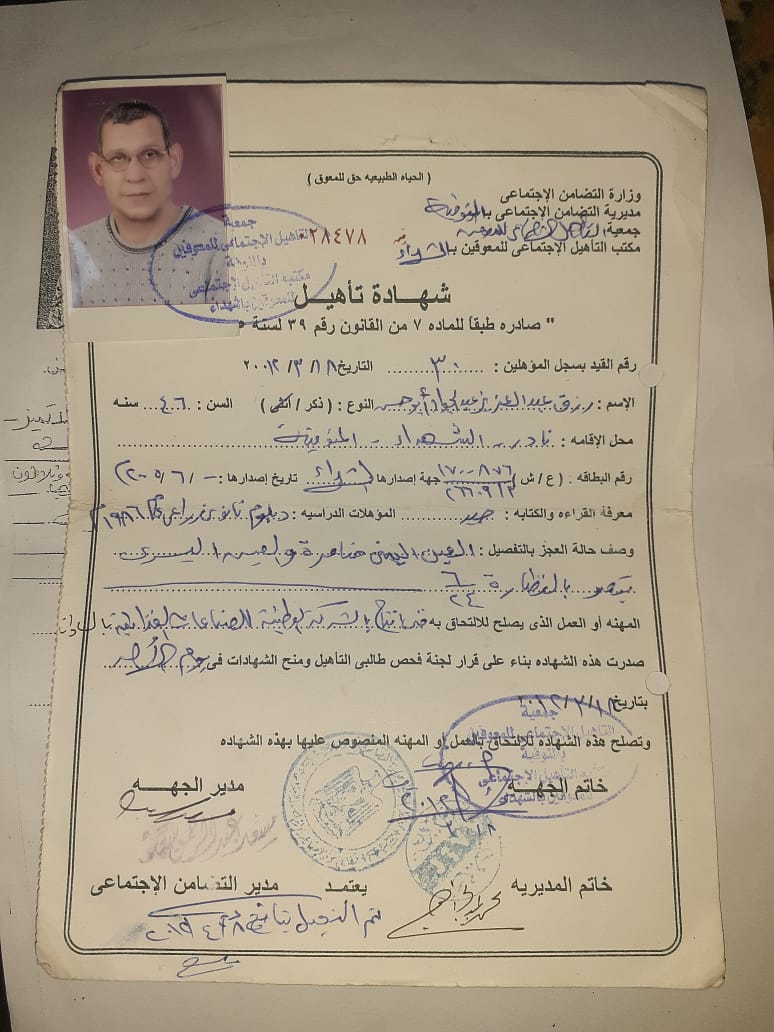 وأكمل «عندي أولاد في المدارس وليس لي دخل آخر أعيش به؛ لأن موظف التأمينات الاجتماعية في منطقة السادات بالمنوفية، رفض عرضي على لجنة في طنطا أو القاهرة لحل مشكلتي».