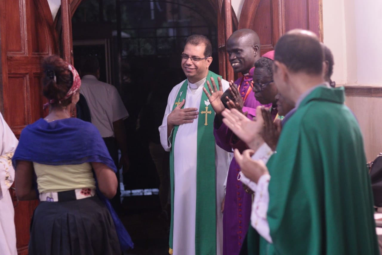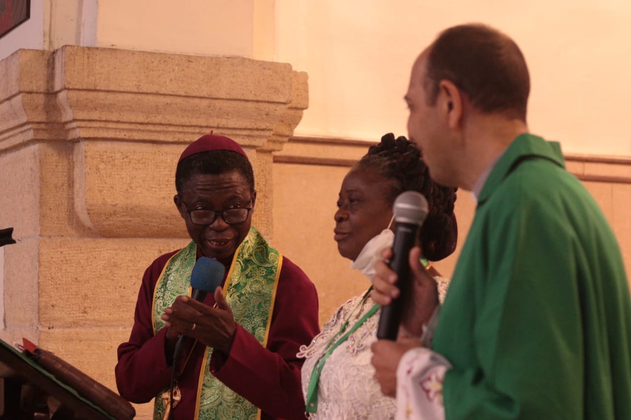 من جانبه استقبل الأرشيدياكون عماد باسيليوس رئيس مجلس القساوسة الوفد الأفريقي بكنيسة القديس ميخائيل الأسقفية بمصر الجديدة حيث قدم عظة القداس الأسقف أوسكار كريستيان أمواه أسقف كوماسى يغانا