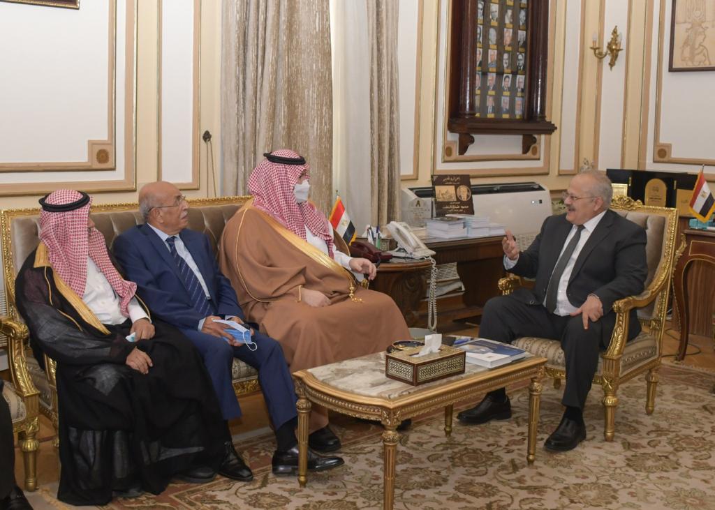 التقى الدكتور محمد عثمان الخشت رئيس جامعة القاهرة، بمكتبه الأمير عبد العزيز بن طلال بن عبد العزيز رئيس مجلس أمناء الجامعة العربية المفتوحة، وبحضور الدكتور مفيد شهاب وزير التعليم العالي الأسبق، والدكتور عبد الحي عبيد رئيس جامعة حلوان الأسبق، والدكتور حسام الملاح رئيس جامعة نهضة مصر، ونواب رئيس جامعة القاهرة وعدد من عمداء الكليات ومدير مركز التعليم المدمج بالجامعة، وذلك لمناقشة التعاون بين الجامعتين وتبادل الخبرات.