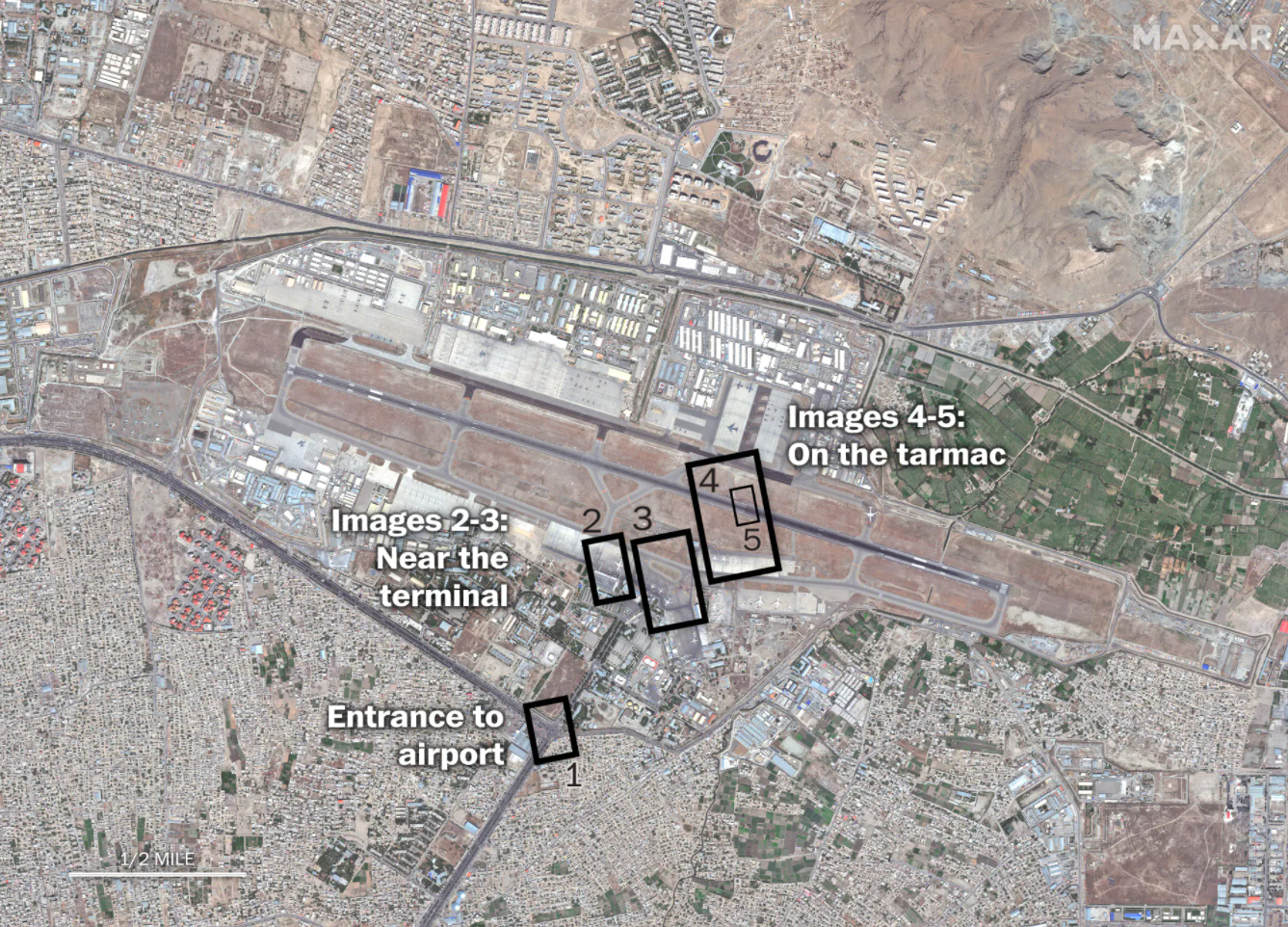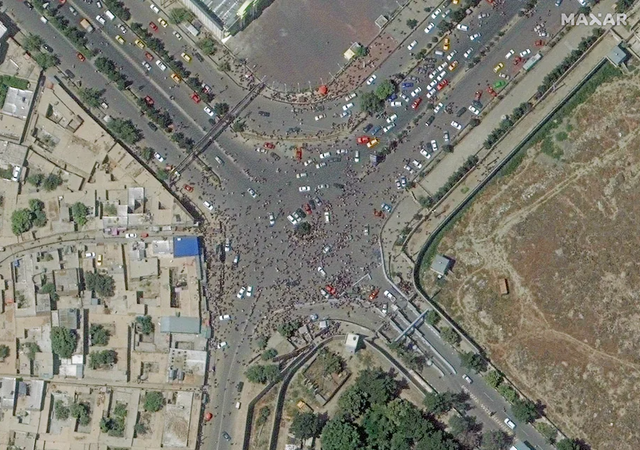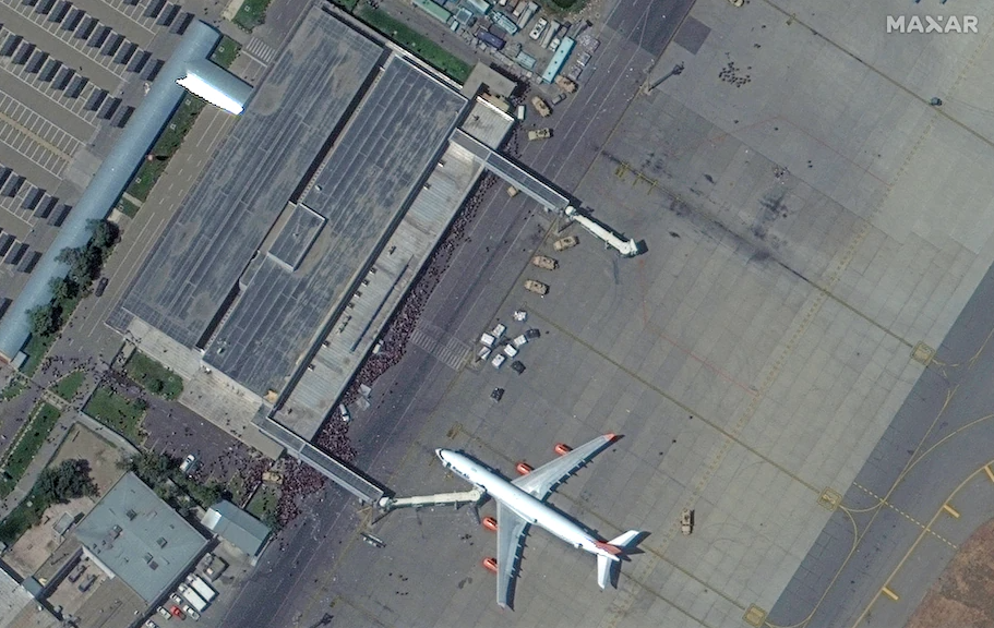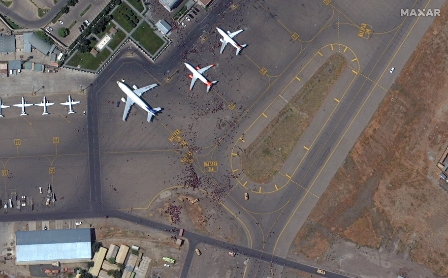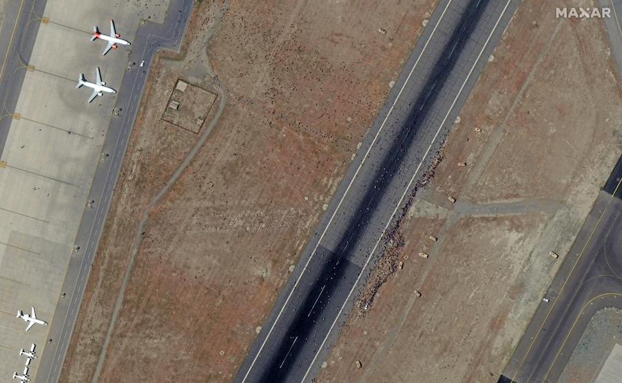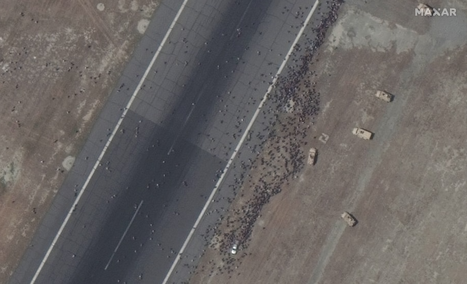 ونشرت صحيفة واشنطن بوست، الصور التي التقطتها شركة Maxar Technologies والتي تظهر حشدا من الناس من مدخل المطار إلى مدرجه، في الوقت الذي كانت فيه طالبان قد دخلت المدينة وسيطرت على كافة المؤسسات والمقرات الحكومية الرئيسية.