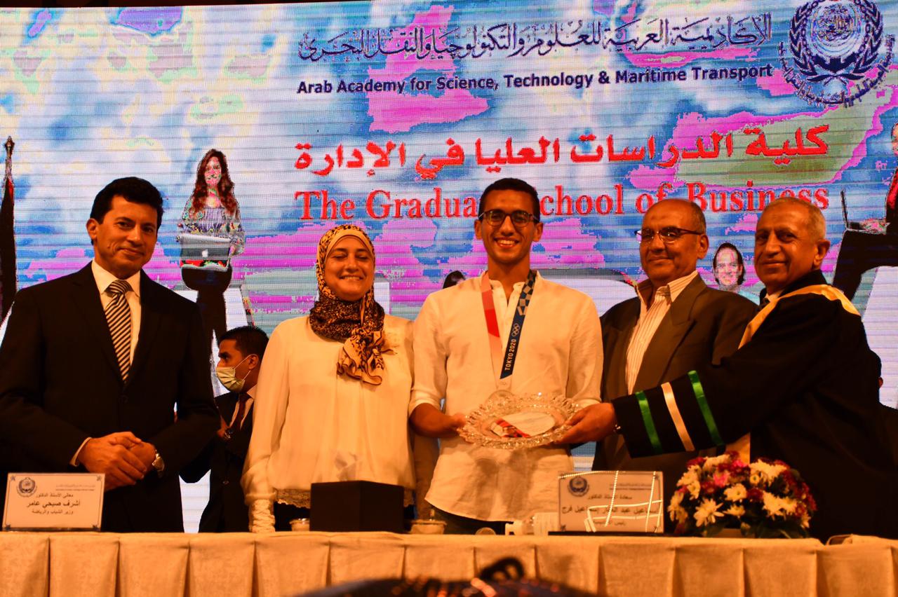 شهد أشرف صبحي، وزير الشباب والرياضة، تكريم الأكاديمية العربية للعلوم والتكنولوجيا والنقل البحري أبطال مصر وأبنائها الطالب سيف عيسى خريج كلية الإدارة، وأحمد الجندي الطالب بكلية الهندسة والحاصلين على ميداليات بدورة الألعاب الأولمبية بطوكيو.