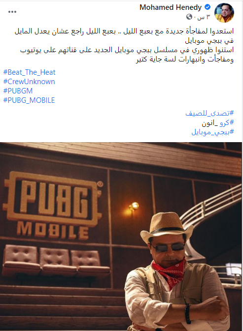 بعبع الليل.. بهذه الطريقة هنيدي يروج لمشاركته في مسلسل كوميدي من إنتاج ببجي موبايل