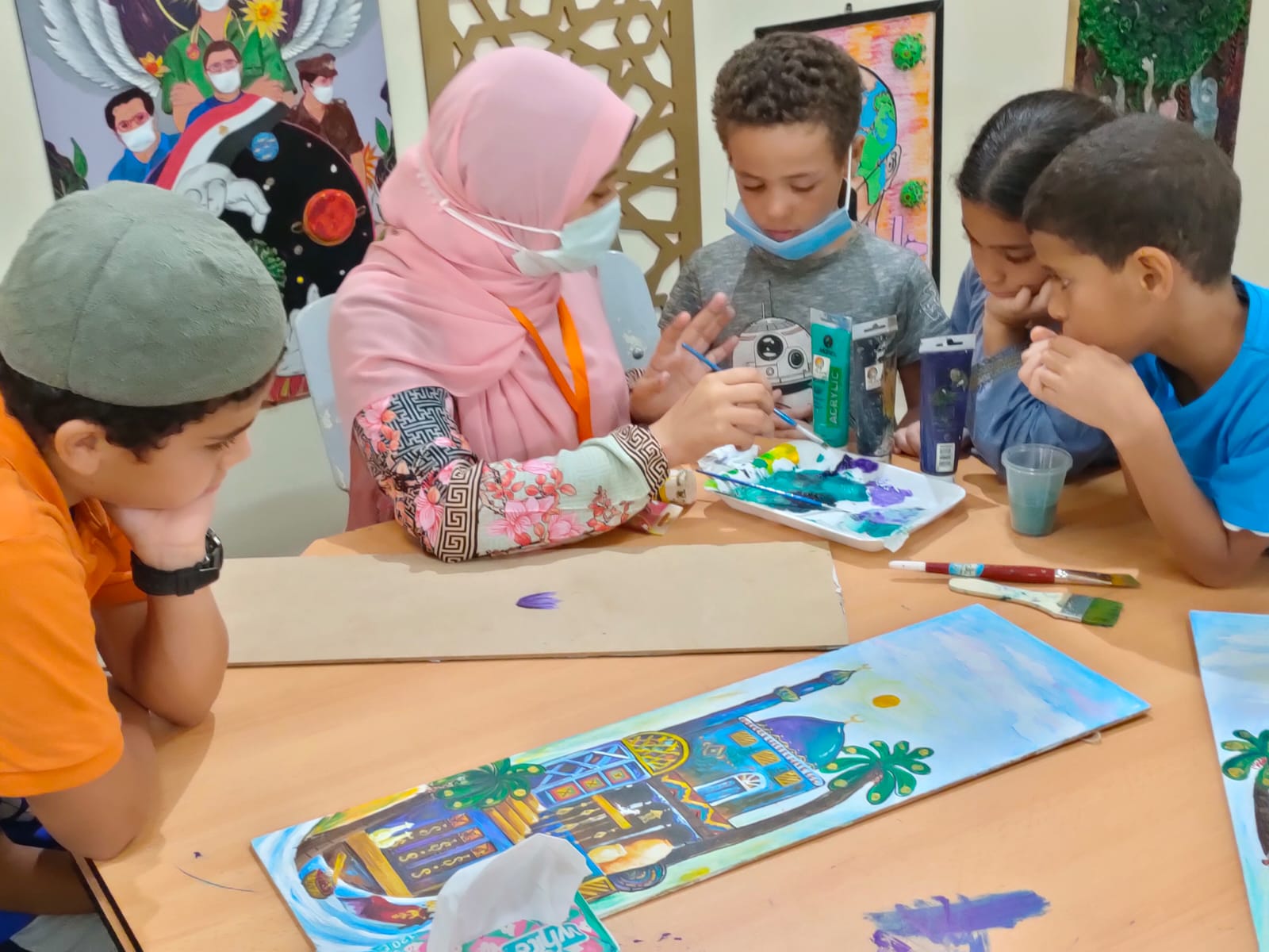 ورش الرسم والخط بجناح الأزهر تجذبان زوار معرض الإسكندرية للكتاب