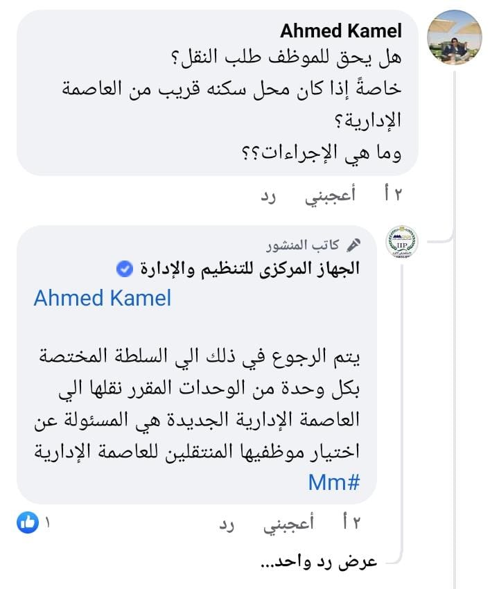 يجيب الجهاز المركزي للتنظيم والإدارة، برئاسة الدكتور صالح الشيخ، على هذا السؤال، أن مسألة النقل يتم الرجوع فيها إلى السلطة المختصة بكل وحدة من الوحدات المقرر نقلها إلى العاصمة الإدارية.