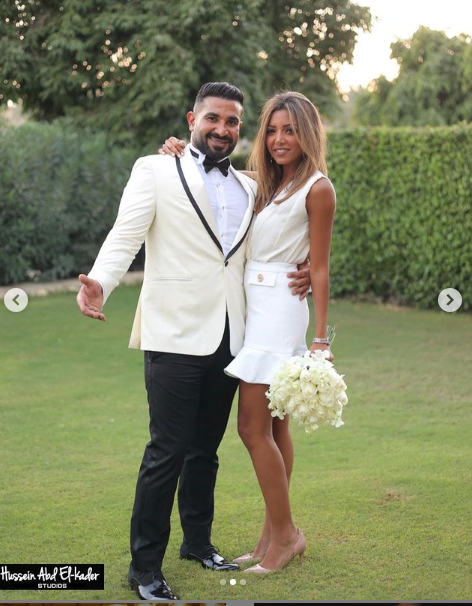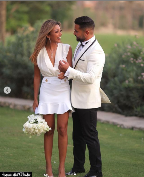 وظهر أحمد سعد ممسكًا ببوكيه الورد في يده ومن ثم يحتضن عروسته علياء بسيوني في مشهد رومانسي جمعهما بعد عقد قرانهما.