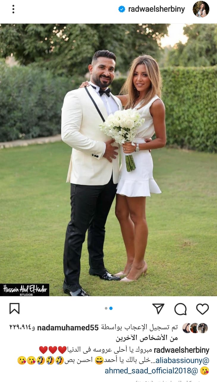 نشرت الإعلامية رضوى الشربيني مجموعة صور لأحمد سعد برفقة زوجته علياء بسيوني من عقد قرانهما، وذلك عبر حسابها الشخصي على موقع تبادل الفيديوهات والصور القصيرة انستجرام، وعلقت عليها قائلة: «مبروك يا أحلى عروسة في الدنيا.. خلي بالك يا أحمد أحسن بص».