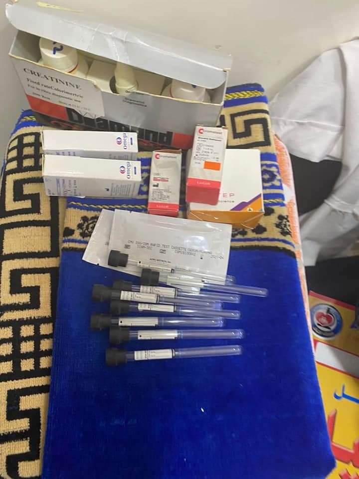 وتم تحريز الأدوية والمستلزمات الطبية وروشتات الكشف وسجل الحالات، وعدد من المطبوعات الخاصة بالمكان، وتم تجميع المكان بالجمع الأحمر، وقد وجد بالمكان سرير كشف وعمليات وأدوات جراحية خاصة بالعمليات.