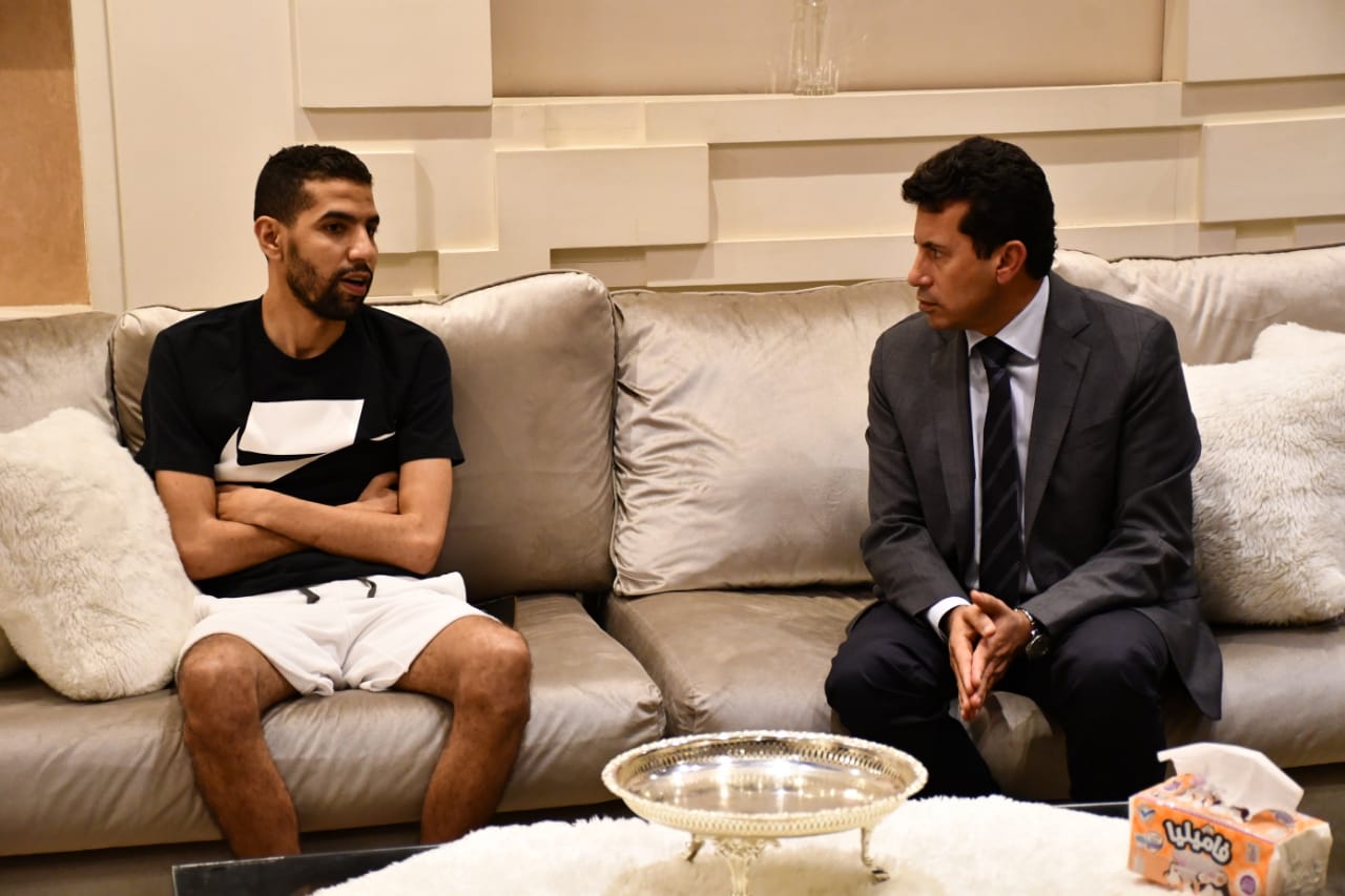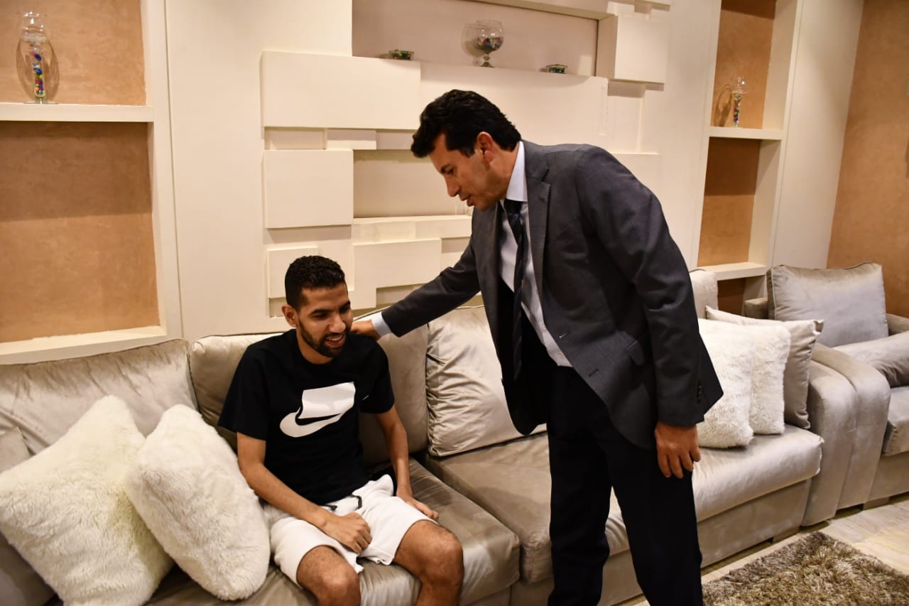 وزير الشباب والرياضة يزور مؤمن زكريا في منزله
