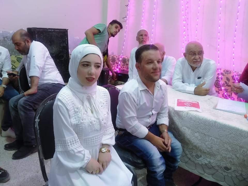 وتابع، أنه تحدث مع والدته للبحث عن زوجة تكون شريكة حياته وبالطريقة التقليدية تقدم حسين إلى أسماء الذي عندما رآها أعجبت به وأعجب بها حتى تمت خطبتهما، وكتب الكتاب وفى انتظار الفرح الإثنين المقبل.
