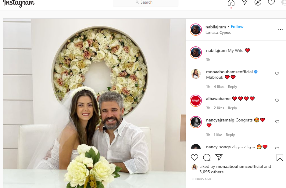 نشر الملحن نبيل عجرم صورة له بصحبة زوجته عبر موقع تبادل الصور والفيديوهات انستجرام، بعد عقد قرانهما، وترتدي عروسه الفستان الأبيض.