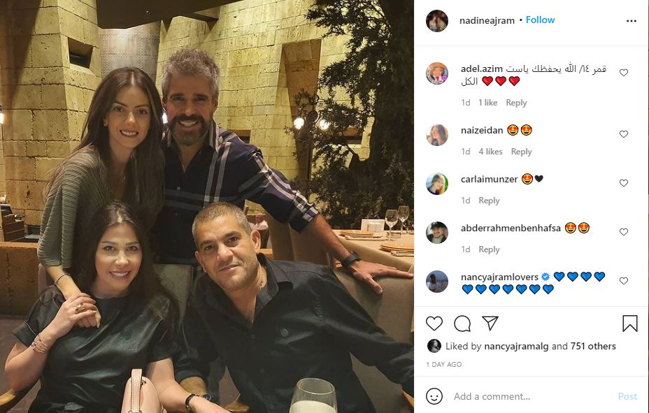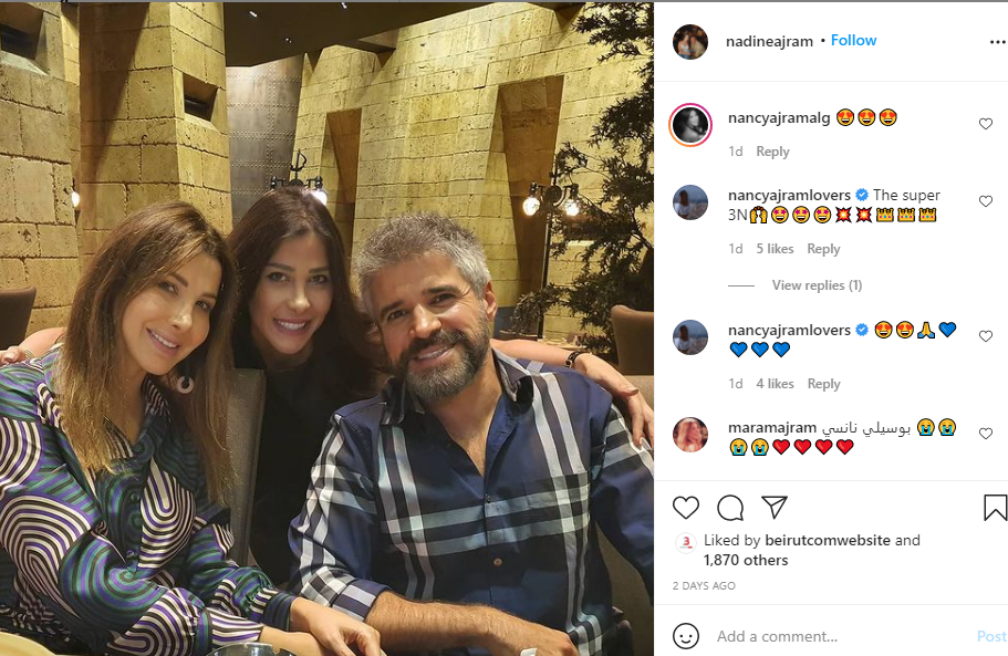 في نفس السياق شاركت شقيقته نادين عجرم بعض الصور له ولزوجته في عقد قرانهما بصحبة العائلة في العشاء خلال عقد القران على موقع انستجرام، وستحيي شقيقتهم الفنانة نانسي عجرم حفل الزفاف بلبنان.
