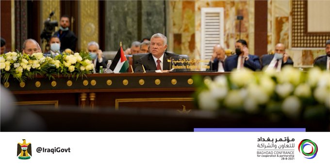 وقال العاهل الأردني، الملك عبد الله الثاني بن الحسين، إن “مؤتمر بغداد للتعاون والشراكة" دليل على دور العراق المحوري في تعزيز الحوار الإقليمي من خلال سياسة التوازن والانفتاح، وأن أمن العراق واستقراره هو أمن واستقرار للمنطقة كلها، فالأمن يعد ركيزة للتكامل الاقتصادي الإقليمي، ومناخا لإيجاد بيئة إيجابية تعزز التعاون بين دول المنطقة، مشيرا إلى أن مشاركة الدول دليل على دعم سيادة القانون، ودعم الشعب العراقي لمزيد من التقدم والازدهار.