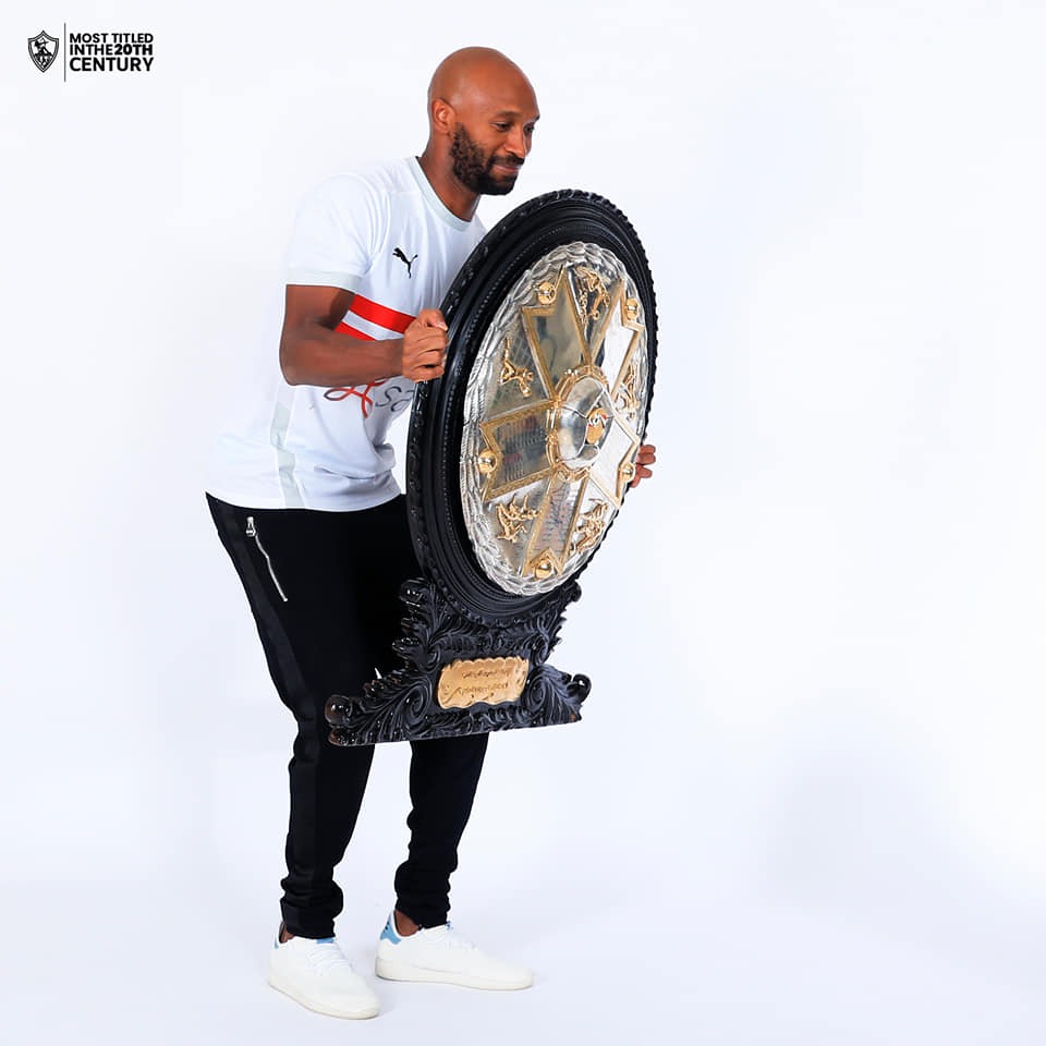 وكتب حساب النادي على الصور عبر حسابه: «درع الدوري بين يدي قائد الزمالك».