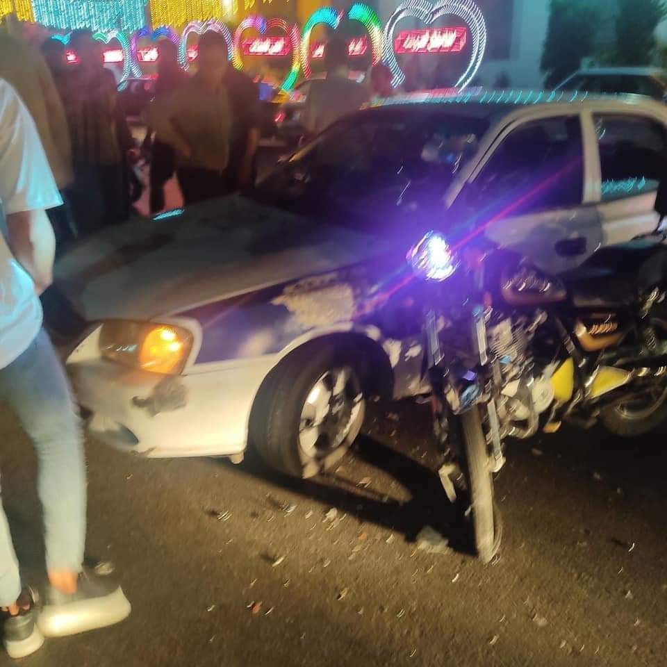 تصادم سيارة ودراجة نارية علي مفارق الموت ببورسعيد