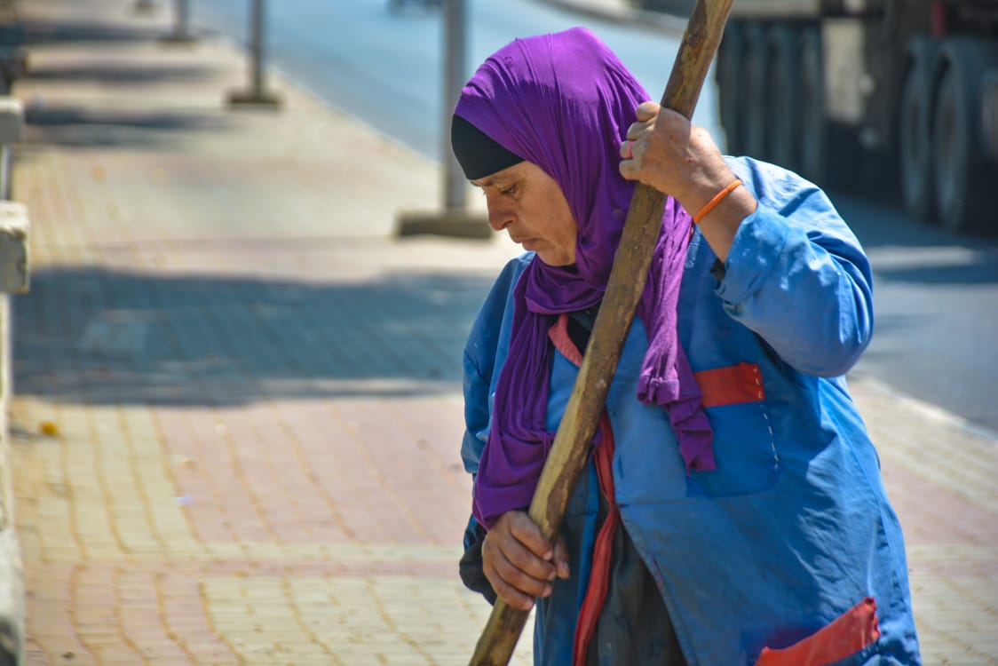 السيدة حياة، تمسك بالمقشة لإزالة القمامة المكلفة بتنظيفها ما بين محطة عبود ومحطة الزاوية الحمراء، وكأنها تحمل سلاحًًا تخشى أن تفرط فيه، حيث تعمل 8 ساعات يوميا لمدة 6 أيام في الأسبوع، من أجل الإنفاق على أسرتها المكونة من زوجها و5 أبناء بمراحل تعليمية مُختلفة.