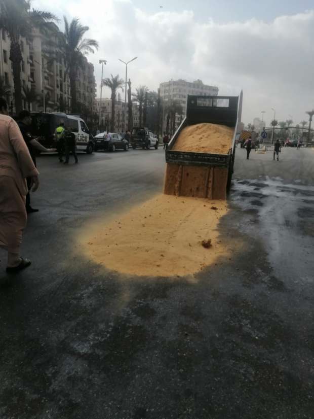 وكانت غرفة عمليات محافظة القاهرة، قد تلقت بلاغًا بانقلاب سيارة محملة بالزيت بمدخل ميدان التحرير ناحية ميدان عبد المنعم رياض، ما نتج عنه سقوط كمية كبيرة من الزيت بمدخل الميدان.