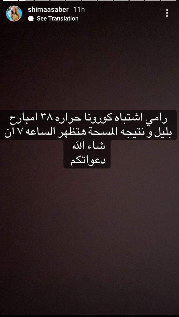 وقالت شيما صابر عبر حسابه الشخصي على موقع التواصل الاجتماعي انستجرام، عن نتيجة مسحة رامي صبري، الحمد لله سلبي.