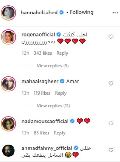 ورد أحمد فهمي في تعليق آخر على سخرية هنا الزاهد قائلًا: «خلي الساحل ينفعك بقى»، وانهالت العديد من التعليقات على المنشور كما كتبت الفنانة روجينا تعليقا آخر قائلة: «أحلى كتكت يا عمري».