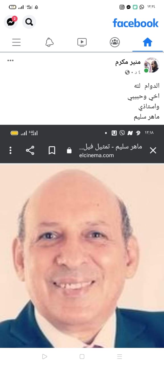 وأعلن الفنان منير مكرم عضو نقابة المهن التمثيلية خبر وفاة الفنان ماهر سليم ، وذلك عبر حسابه الشخصي بموقع التواصل الاجتماعي فيس بوك، قائلًا: الدوام لله، أخي وحبيبي وأستاذي ماهر سليم في ذمة الله، مطالبًا جمهوره بالدعاء له بالرحمة والمغفرة.