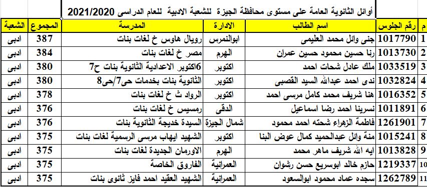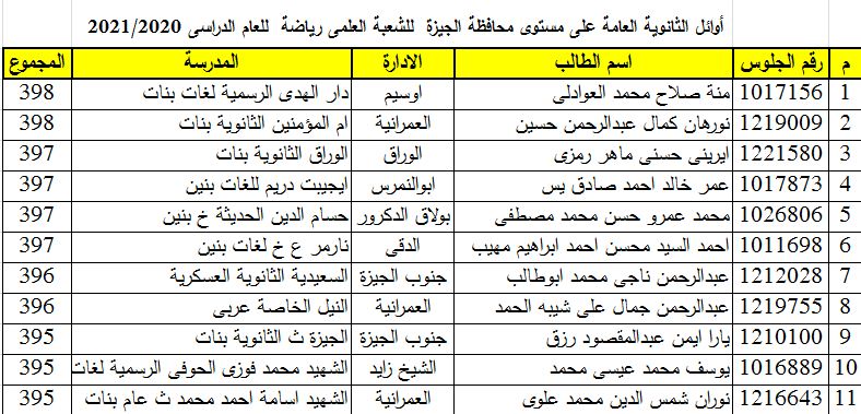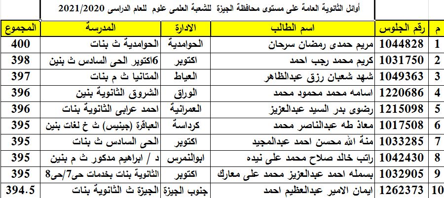 بلغ عدد الطلاب الأوائل 45 طالبًا وطالبة بإدارات تعليم الجيزة.