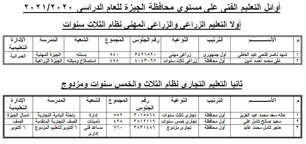 هنأ مجدى الجيار مدير مديرية التربية والتعليم بالجيزة، أوائل الشهادتين الثانوية العامة والدبلومات الفنية للعام الدراسي 2020/2021 على مستوى الجمهورية ومستوى محافظة الجيزة.