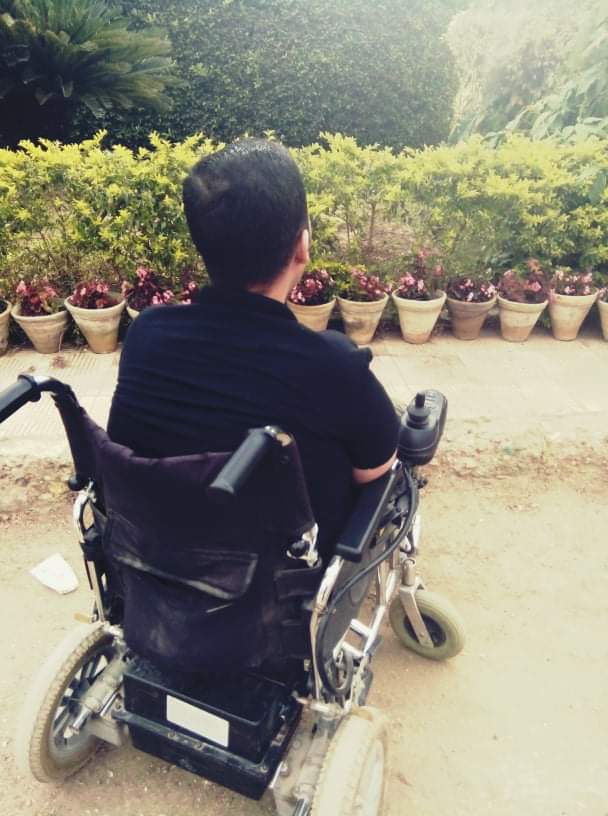 أوضح محمود خالد، البالغ من العمر 23 عامًا، أنه مصاب بمرض الضمور العضلي من ولادته، نظرًا لكونه مرضًا وراثيًّا.