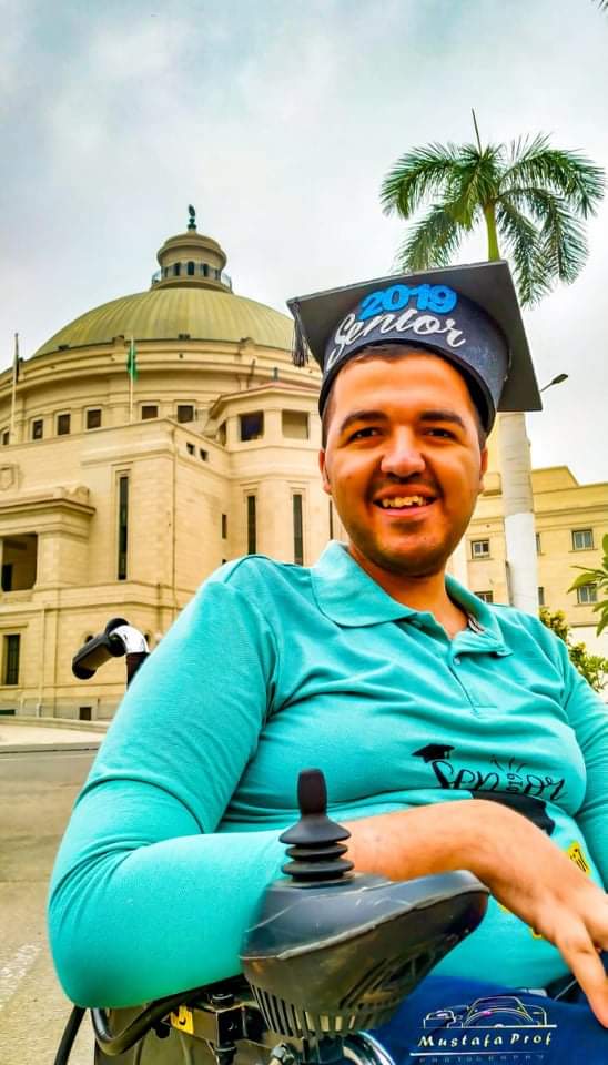 وعن الصعوبات التي تواجهه كشف: النزول والطلوع وأنا على الكرسي، وإني أمشي في الشارع بيه هي دي الصعوبات اللي بتقابلني. وشدد على عدم حصوله على وظيفة بعد تخرجه من الكلية، لأن جميع الوظائف لا تتناسب مع حالته، إلا أنه يأمل في الالتحاق بوظيفة تناسبه، ويكون لها عائد مادي جيد.