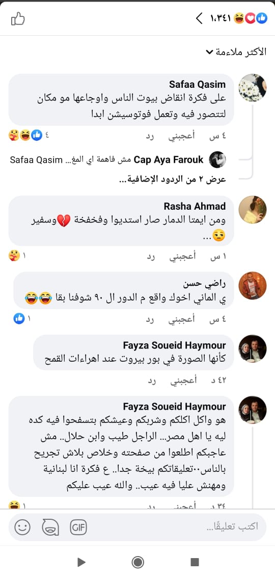 ليتفاجأ الفنان محمد رمضان، برد فعل عنيف من الجمهور على هذه الصورة، حيث جاءت التعليقات كالتالي: «على فكرة أنقاض بيوت الناس وأوجاعها مو مكان لتتصور فيه وتعمل فوتو سيشن أبدًا»، و«أيمتا الدمار صار استوديو وفخفخة وسفير»، «جي على الخراب وتتصور قدامه بدل ما تساعدهم، ضاقت عليك الدنيا».