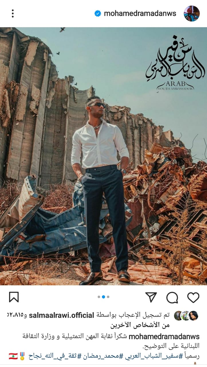 ونشر رمضان صورة له، عبر حساباته الشخصية بموقع التواصل الاجتماعي، أثناء تعليقه على قرارات نقابة شمال لبنان بشأن توضيحها أن الأخير جدير بالدكتوراه التي منحتها له، وأنه يستحق لقب سفير الشباب العربي، بسبب الشعبية الكبيرة التي يمتلكها.
