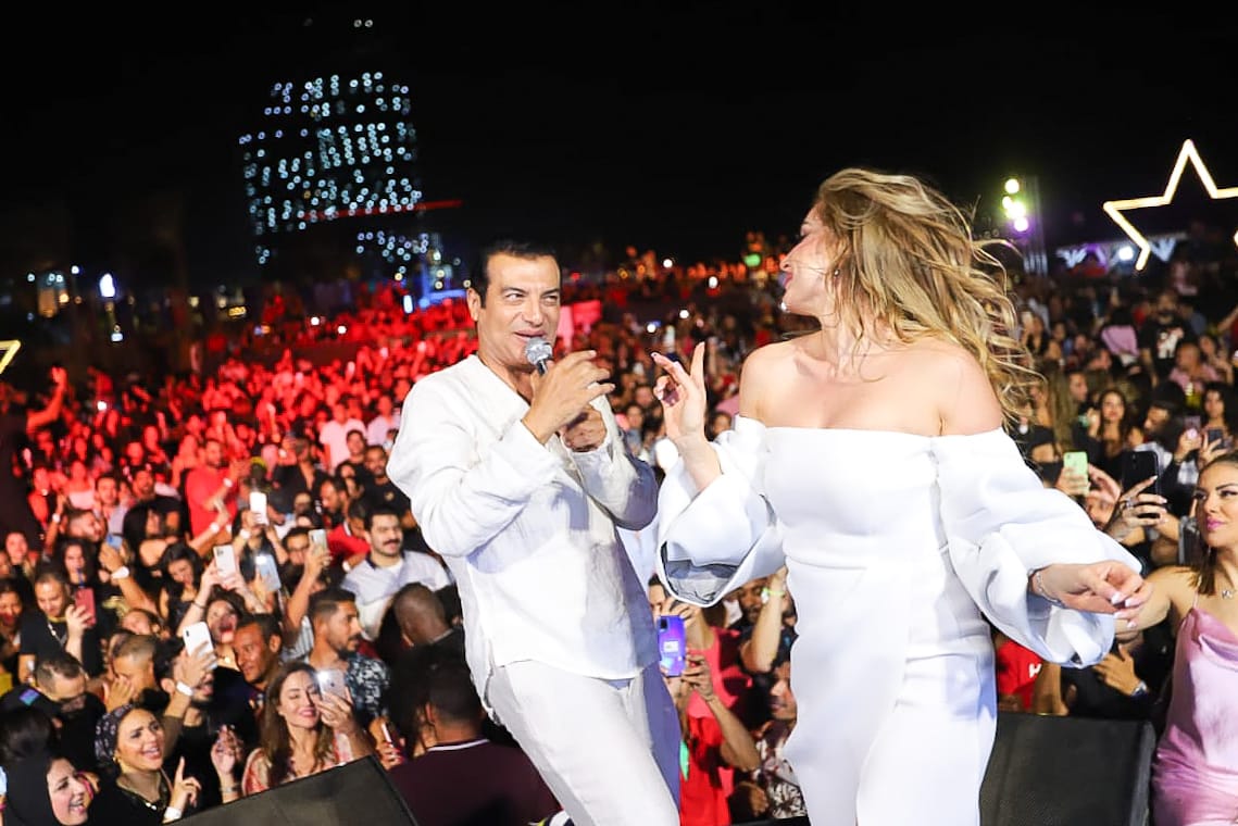 لقطات من حفل خلطة الصيف وآخره.. إيهاب توفيق يرقص مع المعجبات وحسن شاكوش يتجنب لمس المايك