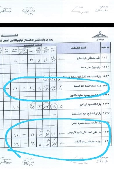 واستكمل أن هناك دليلا لدي طلاب الدراسات العليا من دبلومات متعددة منها دبلوم القانون الخاص، قائلًا إن رصد الدرجات ليس صحيحا، كما أن لائحة الكلية حددت 4 درجات فقط كدرجات رأفة، في حين أنه بالنظر لكشف الدرجات السابق، تلاحظ أن بعض الأشخاص حاصلين على 5 درجات أو 6 درجات، وهناك أيضًا من حصل على 8 درجات رأفة دون وجه حق فكيف ذلك، في حين أن هناك أشخاصا من المفترض أن ينجحوا بحصولهم على 4 درجات رأفة ولكن لم يتم ذلك.