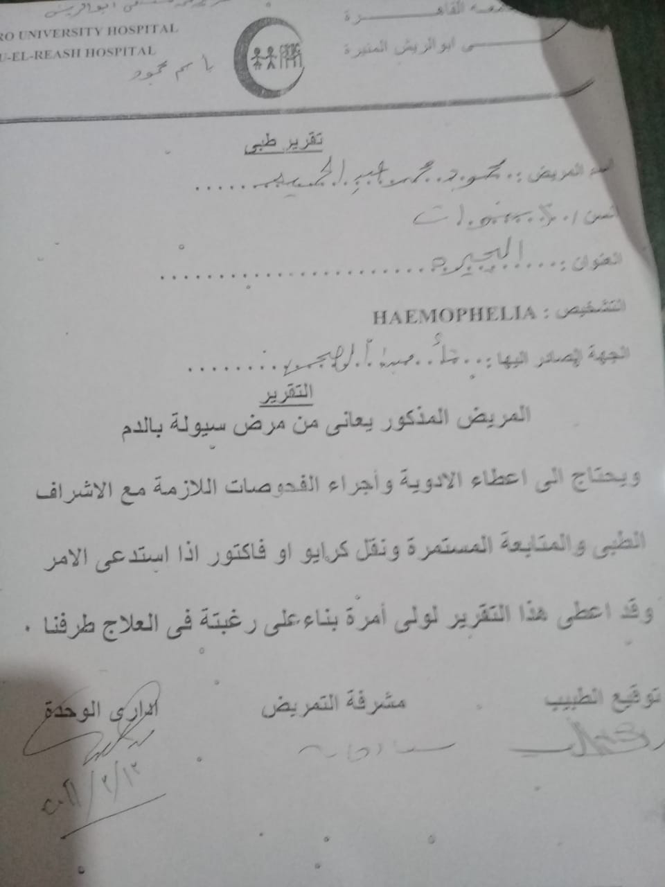 وقال عبد الحميد، إن لديه ولدين الأكبر 18 عاما، والأصغر 13 سنة، والاثنان مصابان بمرض الهيموفيليا، مطالبا المسؤولين بعلاجهما سريعًا، نظرًا لتدهور حالتهما حاليًا.