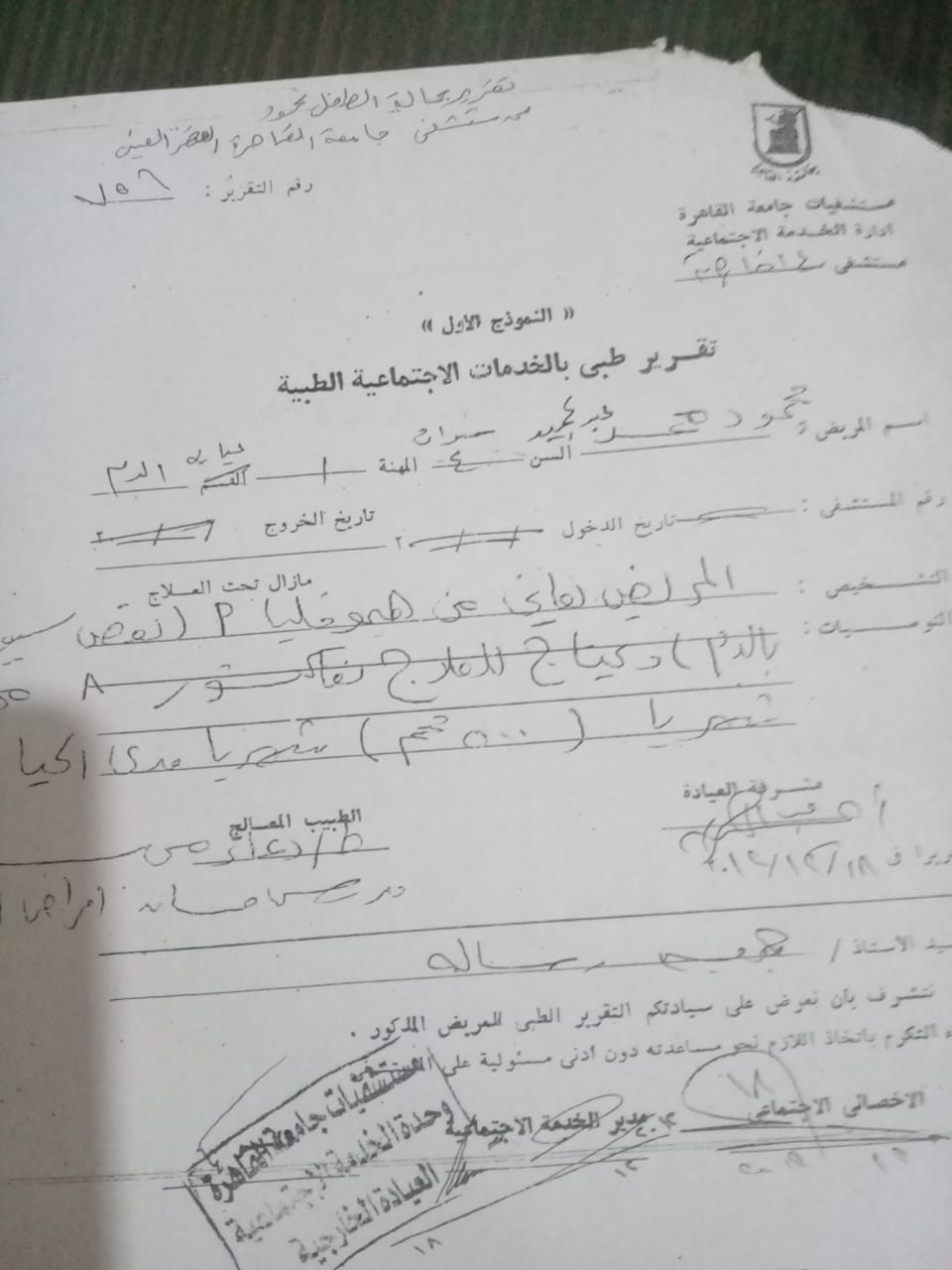 وواصل: «حدث له تآكل في مفصل الركبة، ومن هنا بدأت علاجه على نفقتي الخاصة، كما أنه أُصيب بنزيف في المخ مفاجئ عام 2011، ونظرًا لتأخير وصوله للمستشفى تدهورت حالته للغاية، وحدثت له العديد من المضاعفات، إلى أن أصبح معاقًا ذهنيًا»، مشيرًا إلى عدم قدرته على التحصيل الدراسي، وتواجده في مدرسة لأطفال ذوي الاحتياجات الخاصة.