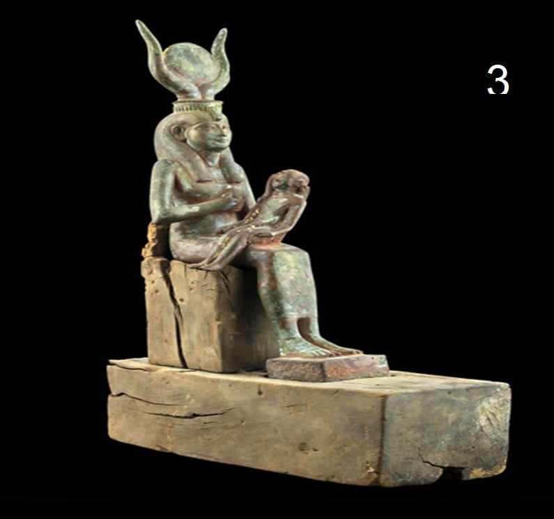 3- تمثال من البرونز لآيزيس جالسة ترضع حورس.