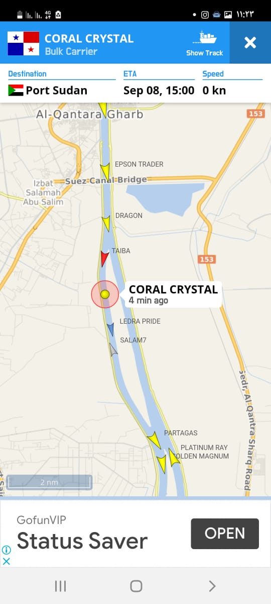 تدخلت قناة السويس سريعا، بعد جنوح سفينة صب بالترقيم المذكور بالمجري الملاحي، قبل قليل.