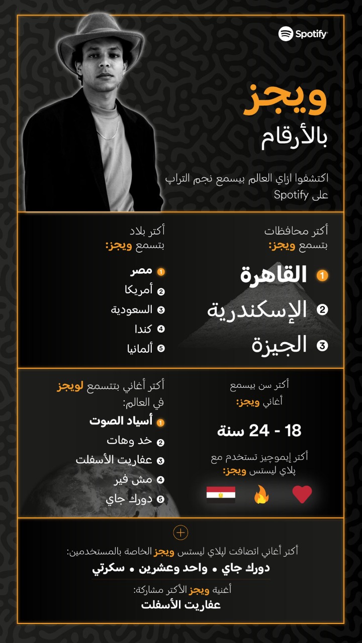 وأكد بيان سبوتيفاي، أن ويجز أصبح مؤخرًا أحد أهم نجوم موسيقى التراب في المنطقة بعد تحقيق العديد من النجاحات من خلال الإيرادات والشعبية.
