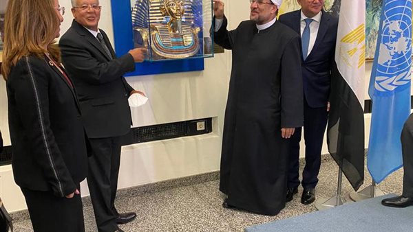 عقدت في مقر الأمم المتحدة في فيينا، مراسم تسليم نسخة طبق الأصل من قناع توت عنخ أمون، إهداءً من مصر إلى المقر الأممي، حيث استقبلت وكيل الأمين العام للأمم المتحدة ومدير مكتب المنظمة في فيينا غادة والي، المستشار حنفي جبالي، رئيس مجلس النواب، والدكتور محمد مختار جمعة، وزير الأوقاف، والسفير محمد الملا، سفير مصر في النمسا، وأعضاء الوفد المصاحب، وذلك في القاعة الرئيسي للمقر التي تستضيف القناع، والتي شهدت احتفاءً بالإهداء المصري من قبل العاملين بالمنظمات الدولية والدبلوماسيين الحاضرين في المبنى خلال مراسم التسليم.