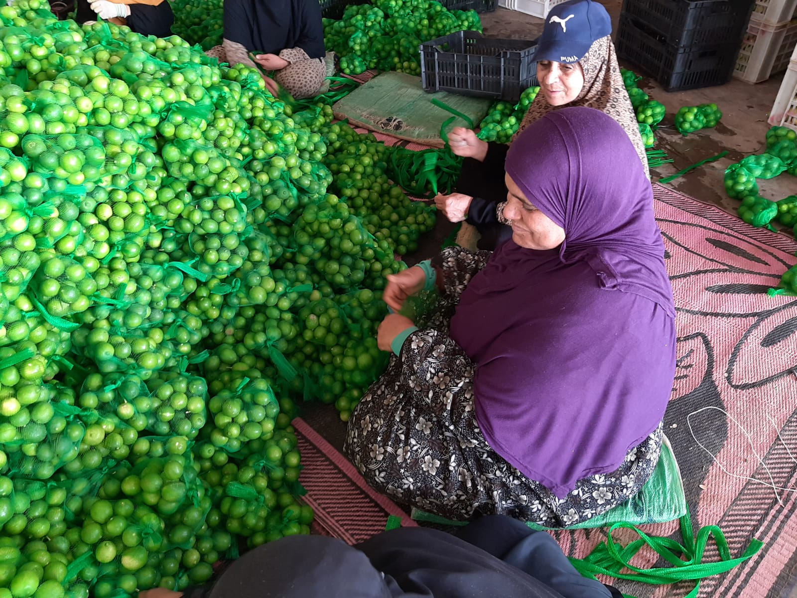 تسير «أم عمرو» في الشمس لمدة 15 دقيقة كاملة في ظل ارتفاع درجات الحرارة؛ لتصل إلى محطة الذهب الأصفر -الليمون- لُتمارس عملها "كمشرفة" من خلال الإتصال بالفتيات وتوجيهن وتعليمهن كيفية تعبئة الليمون بالطريقة الصحيحة.