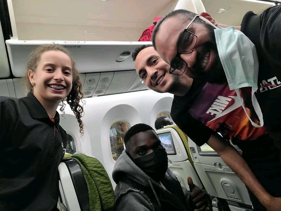 جمعت الصدفة بين لويس ميكيسوني، وهنا جودة إلى جانب محمد البيلي ومحمد عادل شومان، نجوم الأهلي في تنس الطاولة، على نفس الطائرة العائدة من الكاميرون، بعد انتهاء مشاركة الثلاثي الأخير في منافسات بطولة إفريقيا لتنس الطاولة.